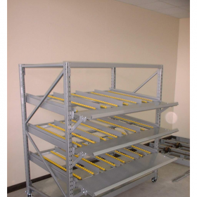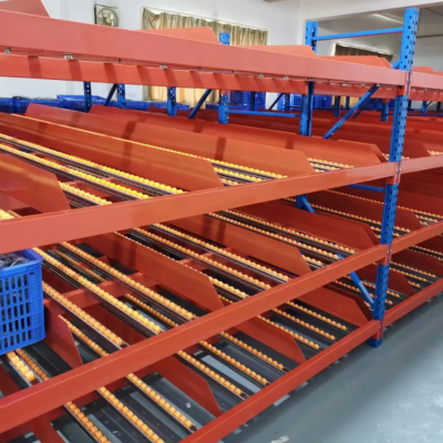 流利式貨架又稱滑移式貨架,采用輥輪鋁合金,鈑金等流利條,利用貨物臺架的自重,從一邊通道存貨,另一邊通道取貨實現(xiàn)先入先出,存儲方便,以及一次補貨多次取貨。流利架存儲效率高,適合大量貨物的短期存放和揀選??膳潆娮訕?biāo)簽,實現(xiàn)貨物的輕松管理,常用滑動容器有周轉(zhuǎn)箱,零件盒及紙箱,適合大量貨物和短期存放和揀選。廣泛應(yīng)用于配送中心、裝配車間以及出貨頻率較高的倉庫。