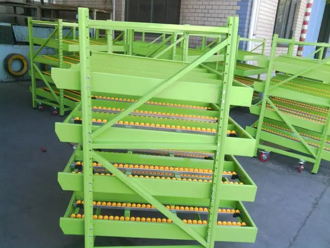 流利式貨架又稱滑移式貨架,采用輥輪鋁合金,鈑金等流利條,利用貨物臺(tái)架的自重,從一邊通道存貨,另一邊通道取貨實(shí)現(xiàn)先入先出,存儲(chǔ)方便,以及一次補(bǔ)貨多次取貨。流利架存儲(chǔ)效率高,適合大量貨物的短期存放和揀選??膳潆娮訕?biāo)簽,實(shí)現(xiàn)貨物的輕松管理,常用滑動(dòng)容器有周轉(zhuǎn)箱,零件盒及紙箱,適合大量貨物和短期存放和揀選。廣泛應(yīng)用于配送中心、裝配車間以及出貨頻率較高的倉庫。