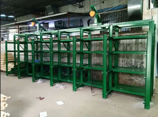 模具貨架是貨架的一種,簡稱:模具架。主要存放各種模具物品,根據(jù)承載能力要求分為輕型模具貨架和重型模具貨架。貨架頂部可配置移動葫蘆車,以方便模具的起吊。