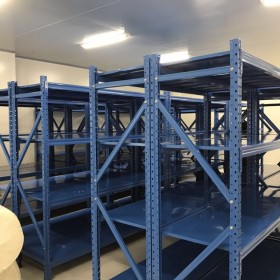 希望簡單實用的客戶我們可以選擇木層板貨架,木層板材質(zhì)為高密度夾板、刨花板與密度板。外表可以選擇是否表面貼塑。