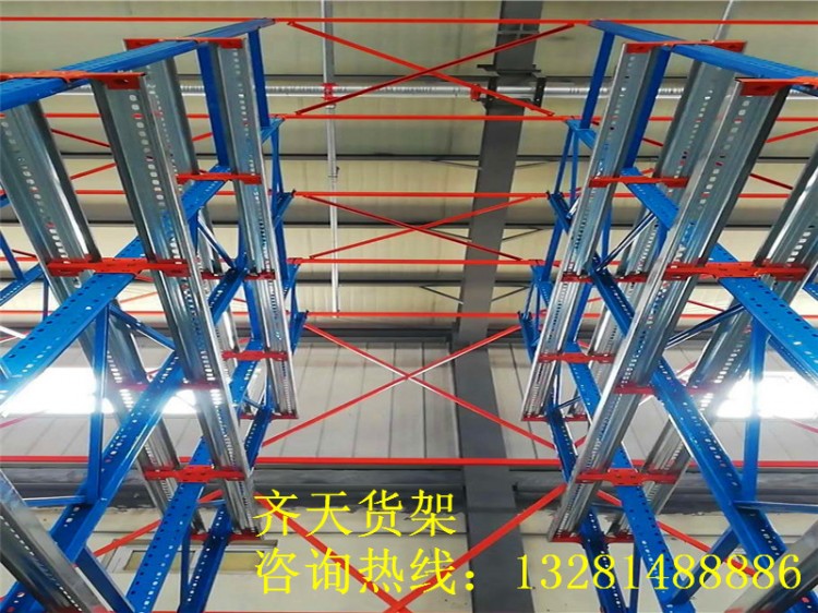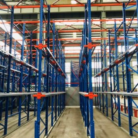 貫通式貨架系統(tǒng)的穩(wěn)定性是所有種類貨架中較為薄弱的,為此貨架不宜過高,一般在10m以內,另外系統(tǒng)中還需加設拉固裝置。此種系統(tǒng)貨架排布密集,空間利用率極高,適于儲存少品種大批量同類型貨物,貨物可從同一側存入取出,也可從一側存入另一側取出.
