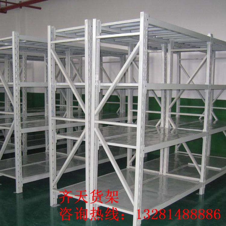 層板式貨架主要是由立柱片、橫梁和層板組成,橫梁與立柱片 掛接組裝成框架。工藝處理后組裝成品,生產(chǎn)出的貨架成品表面光潔、美觀,堅固耐用。常用于中小件、較重貨物貨物存儲。