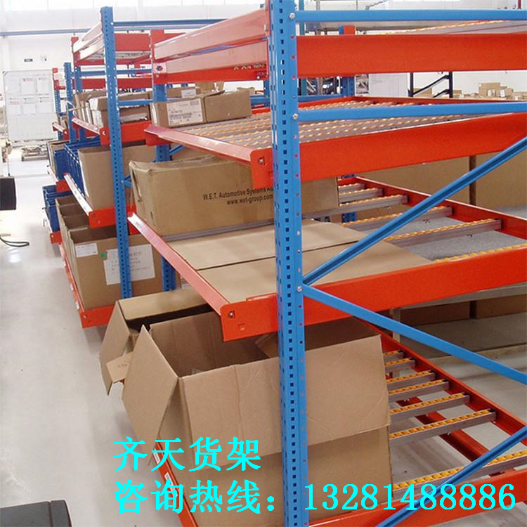 1.流利式貨架采用輥輪鋁合金,鈑金等流利條,利用貨物臺(tái)架的自重,從一邊通道存貨,另一邊通道取貨實(shí)現(xiàn)先進(jìn)先出,存儲(chǔ)方便,以及一次補(bǔ)貨多次取貨。