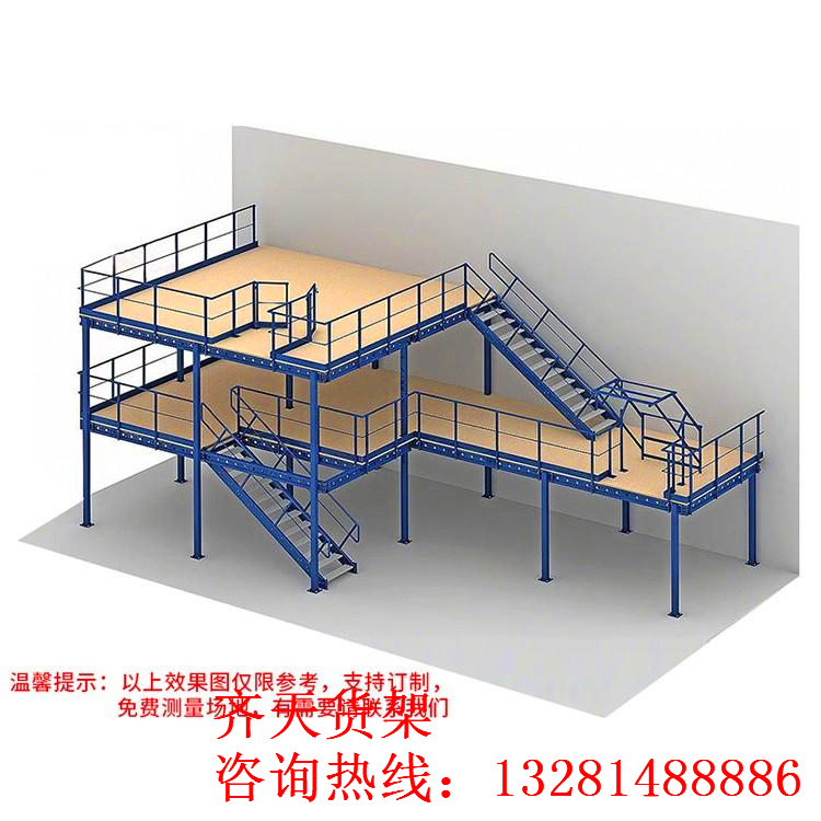 鋼平臺/閣樓貨架結(jié)構(gòu):平臺結(jié)構(gòu)通常由樓板、主次梁、柱、柱間支撐,以及梯子、欄桿等組成,面板有平板、花紋鋼板、沖孔鋼板等品種以適應防火、通風、光照等等不同使用要求。貨物上下樓層可選擇叉車、液壓升降臺、貨梯等方式;貨物同層運輸通常使用小型手推車完成。
