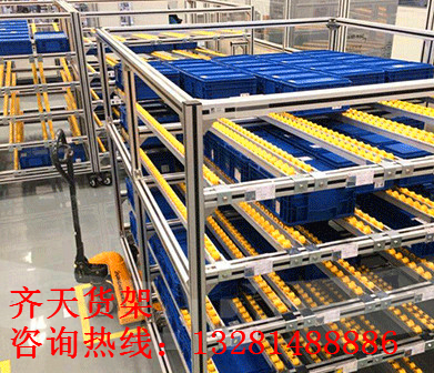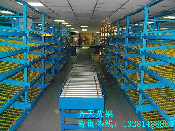 1.流利式貨架采用輥輪鋁合金,鈑金等流利條,利用貨物臺架的自重,從一邊通道存貨,另一邊通道取貨實現(xiàn)先進先出,存儲方便,以及一次補貨多次取貨。