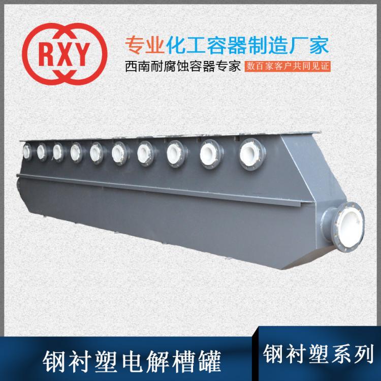 鋼襯塑電解槽、鋼板厚度6mm-14mm,內(nèi)襯厚度16mm-30mm。內(nèi)襯材質選擇:PE、PP、PO。
