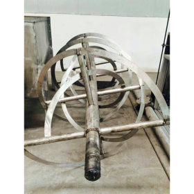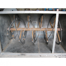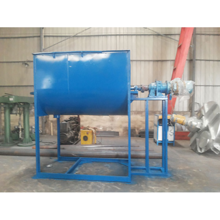 臥式螺帶混合機是在攪拌軸上內(nèi)外螺帶的作用下,將物料在筒體范圍內(nèi)進(jìn)行翻動。內(nèi)螺帶將物料由中間推向二側(cè),外螺帶將物料由二側(cè)推向中心,來回滲混的物料又在螺帶轉(zhuǎn)動下,沿著徑向移動、變化、從而形成了對流循環(huán),由于上述運動的攪拌,物料在很短時間內(nèi)獲得快速的均勻混合,因此它是一種用途廣、適應(yīng)性強、效果良好的高效率混合設(shè)備。