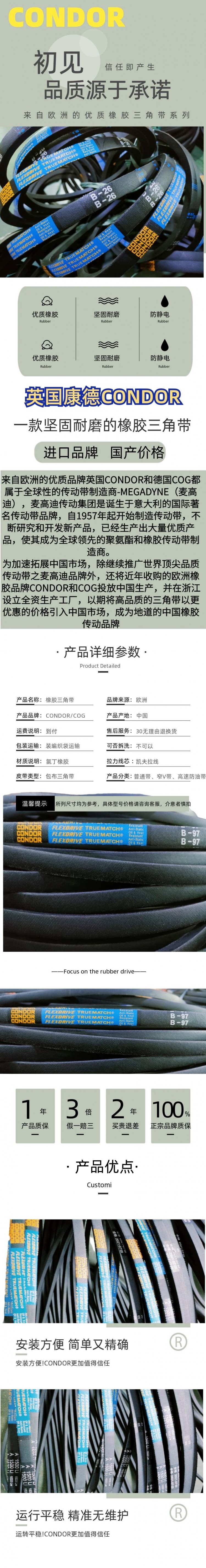 四川省成都市CONDOR康德B型標準V帶公制工業(yè)機器橡膠電機三角帶傳動帶