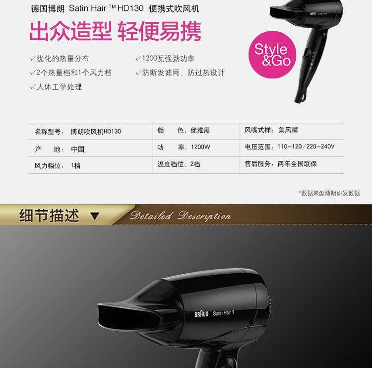 博朗電吹風(fēng)機(jī)HD130 高端不傷發(fā)負(fù)離子電吹風(fēng)家用錘子吹風(fēng)筒