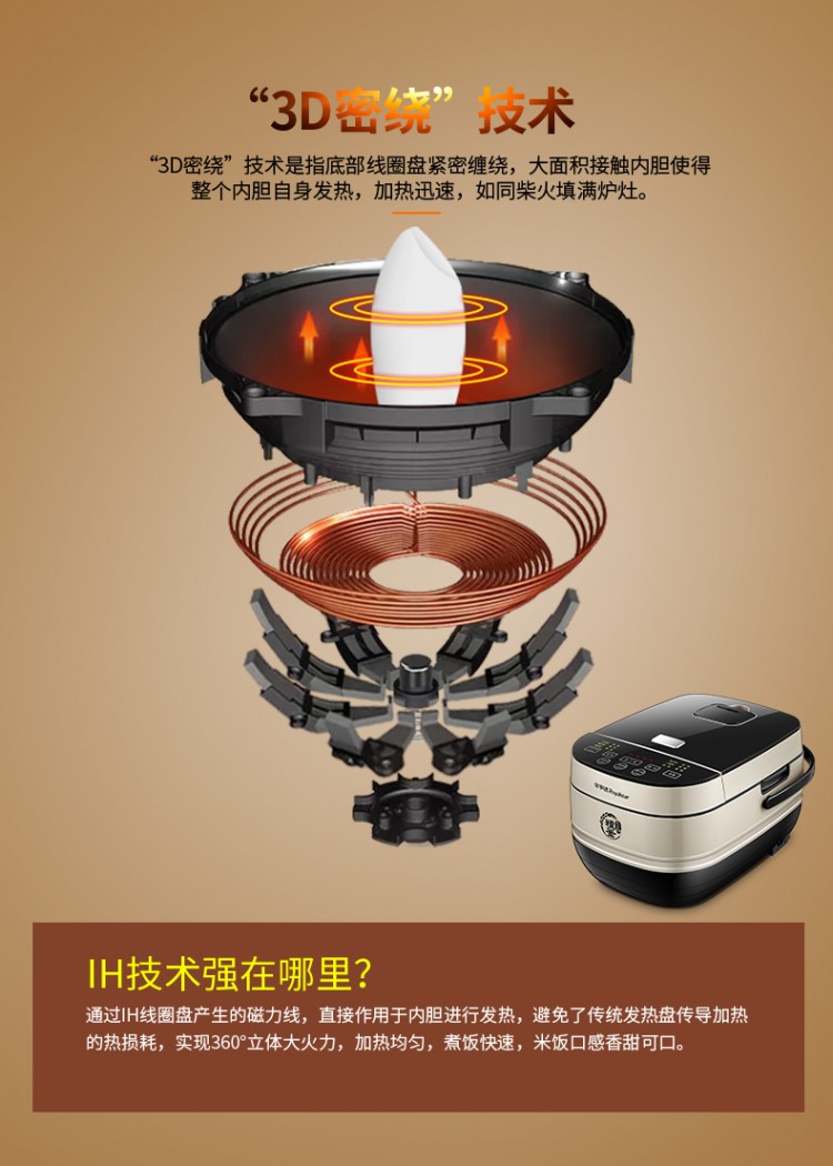 IH電磁感應(yīng)加熱技術(shù),高溫瞬間穿透米芯;