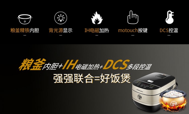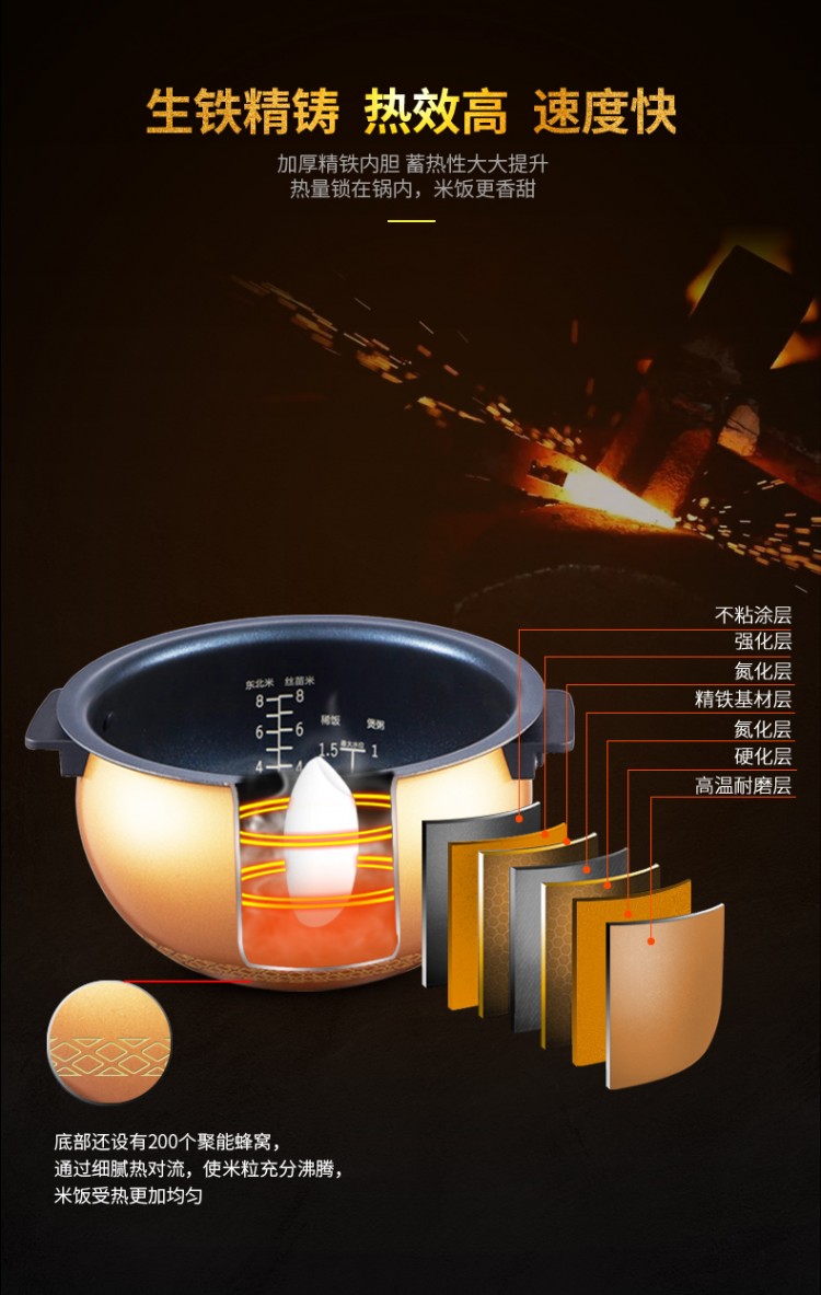 防燙糧釜精鐵內(nèi)膽,耐磨;