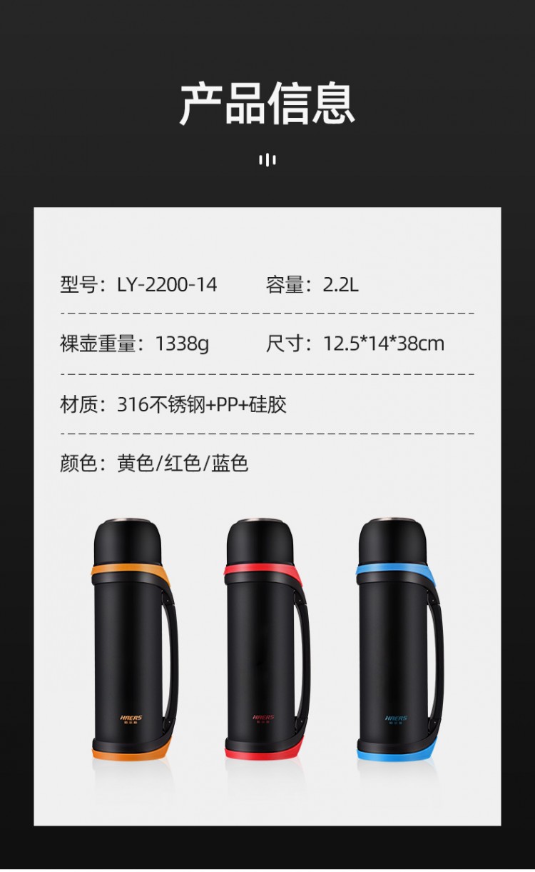 哈爾斯戶外旅行壺HY-2200-14 旅游大容量水杯 禮品定制