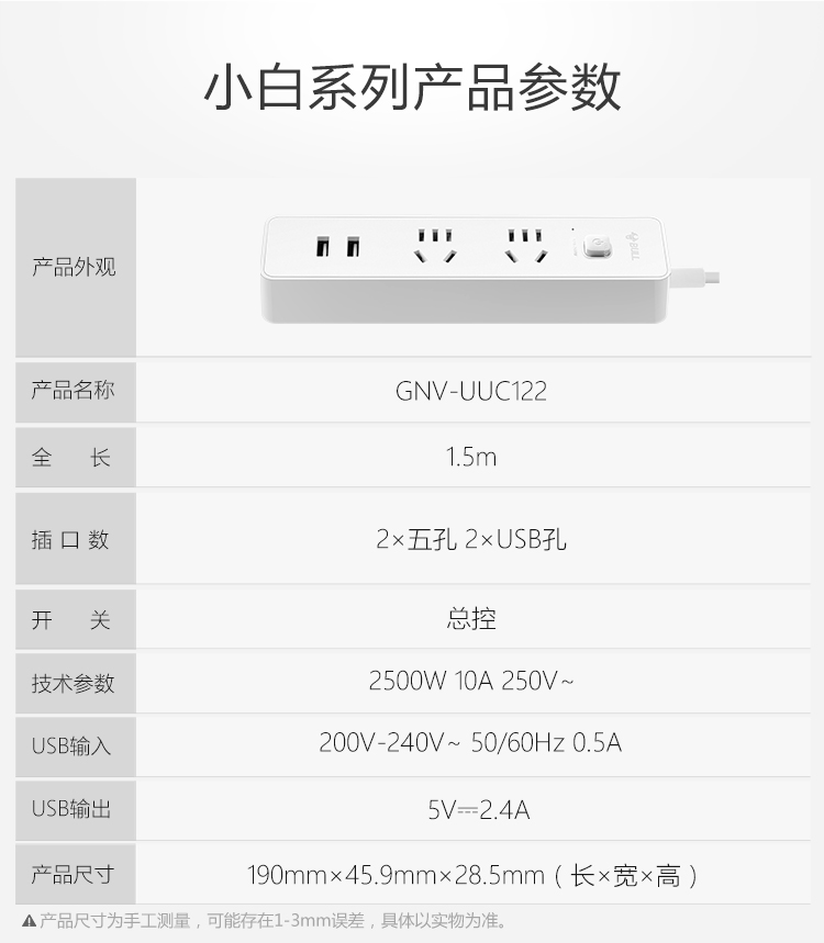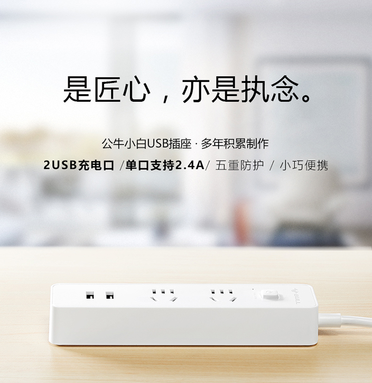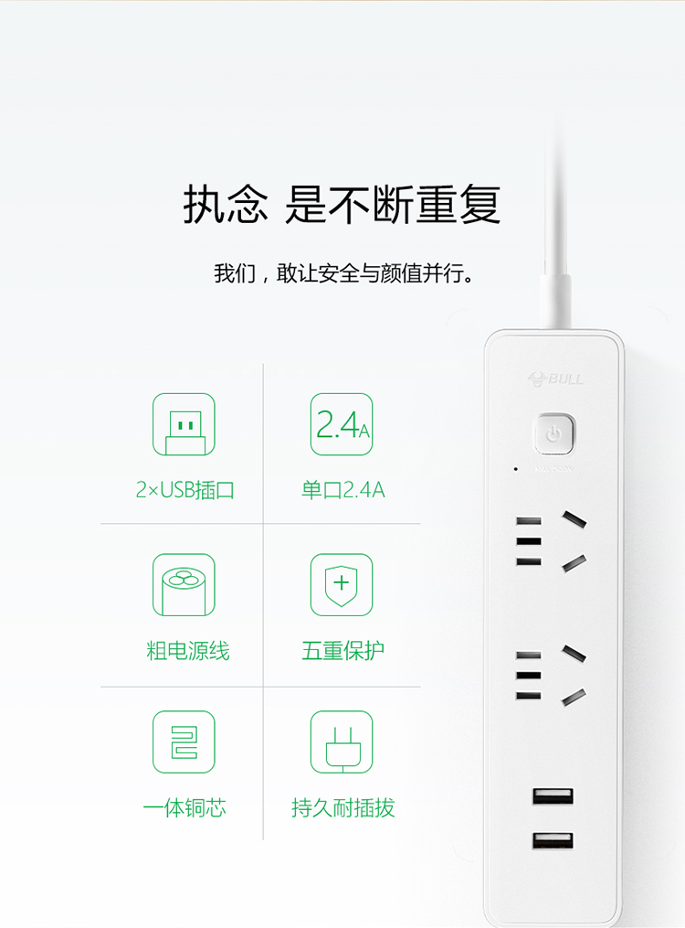公牛USB智能插座 UUD122帶保護(hù)門插排接線板全長(zhǎng)3米