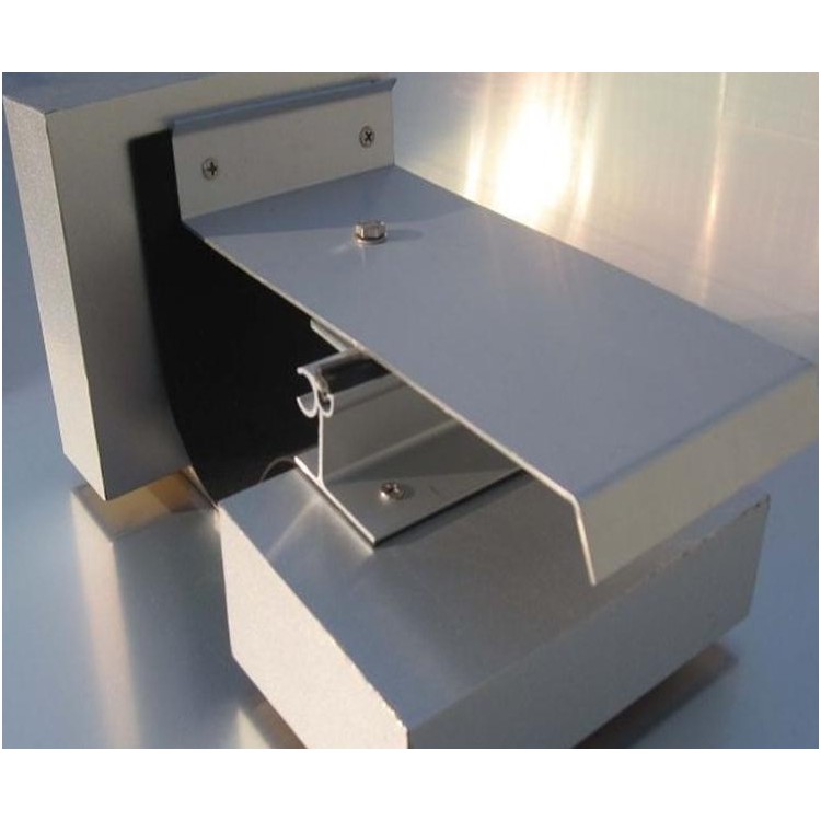屋面變形縫SR-WM 廠家直銷屋面抗震變形縫 鋁合金201 304不銹鋼蓋板 女兒墻轉(zhuǎn)角SR-WM 詳細(xì)信息 屋面變形縫轉(zhuǎn)角R-WM是屋面變形縫RM的轉(zhuǎn)角型,特點(diǎn)及功能與屋面變形縫RM是一樣的,面板采用的是適合屋面轉(zhuǎn)角的轉(zhuǎn)角型蓋板??纱_保變形縫裝置變位時仍能保持中心及原有位置,能確保50%位移量,同時中心蓋板自定中心,接合平整,美觀大方。 中心蓋板可選用鋁合金、不銹鋼板或黃銅,通常使用鋁合金蓋板的居多。 適用縫寬50-500mm