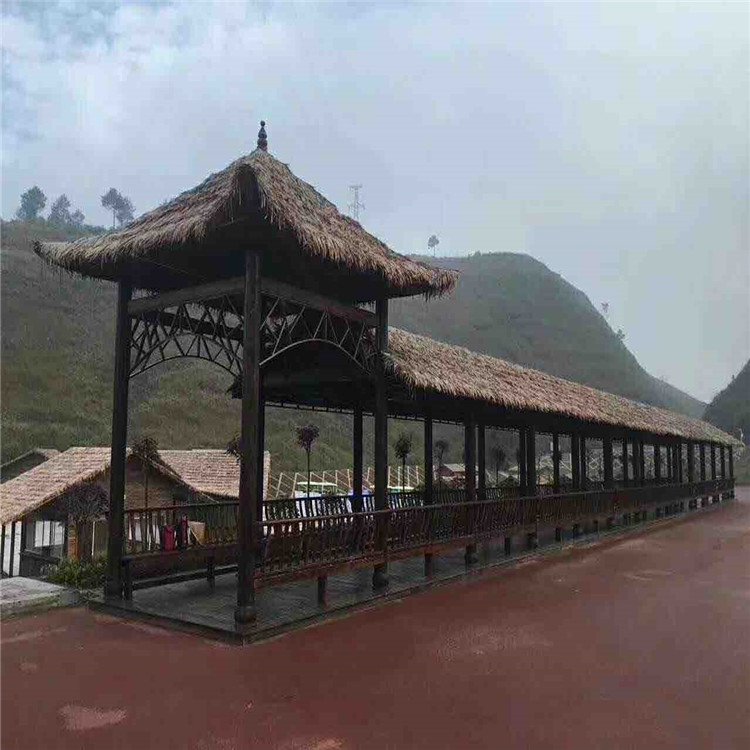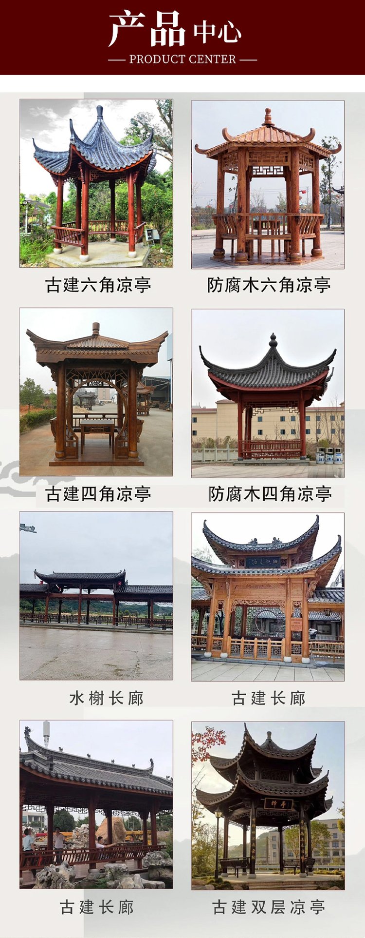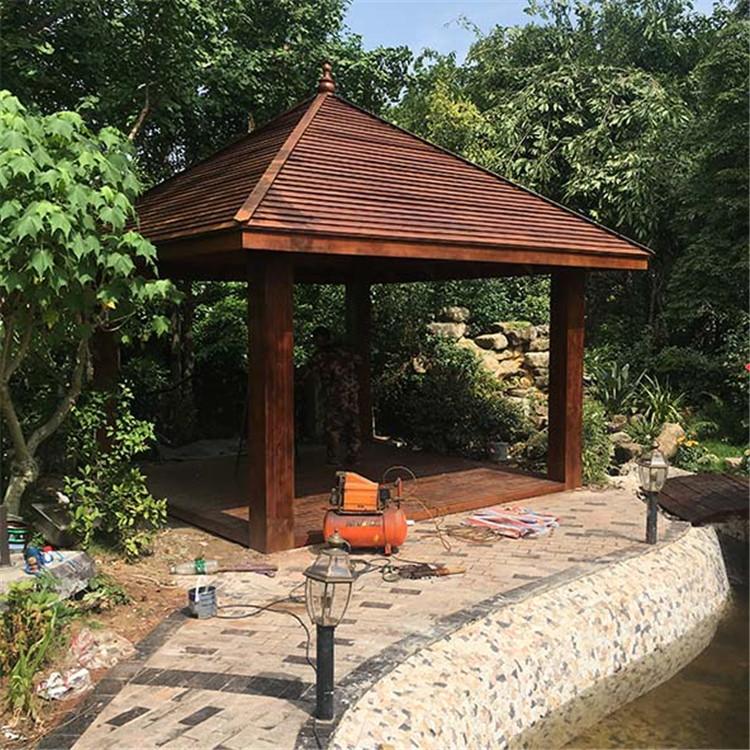 其三看涼亭的頂部。優(yōu)質(zhì)的涼亭頂部是有三層設(shè)計(jì),內(nèi)層為一層碳化木,中間層為防水板,外層是碳化木瓦片,一般采用的是琉璃瓦,瓦片溝槽具有排水功能,三層設(shè)計(jì)不易漏水,可以放心置于室外。亭子內(nèi)燈的線路都是出廠前布好的,亭子葫蘆頂四根米字形橫梁里面有開槽,葫蘆頂里面自帶有電線。