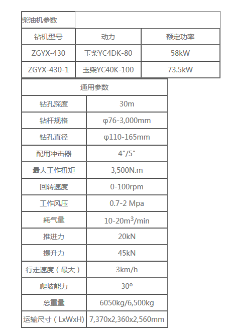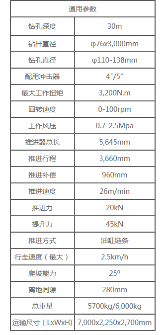1. matching power of the rig is jade wood YC6J190, with 12/14.5 screw air compressor. satisfying the aperture mm 80-115, standard dry dust collector;