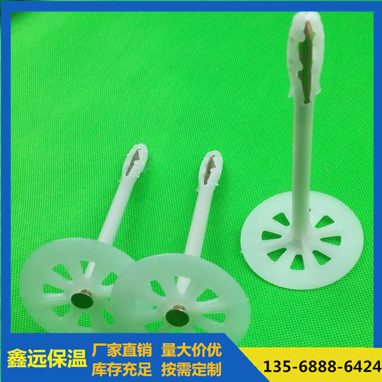 保溫釘由三部分:一是尼龍制成的套管;二是套管內(nèi)的鍍鋅鋼螺絲;三是套管前的尼龍圓盤(用以壓蓋保溫板)。它的長度根據(jù)保溫板厚度而有所不同。