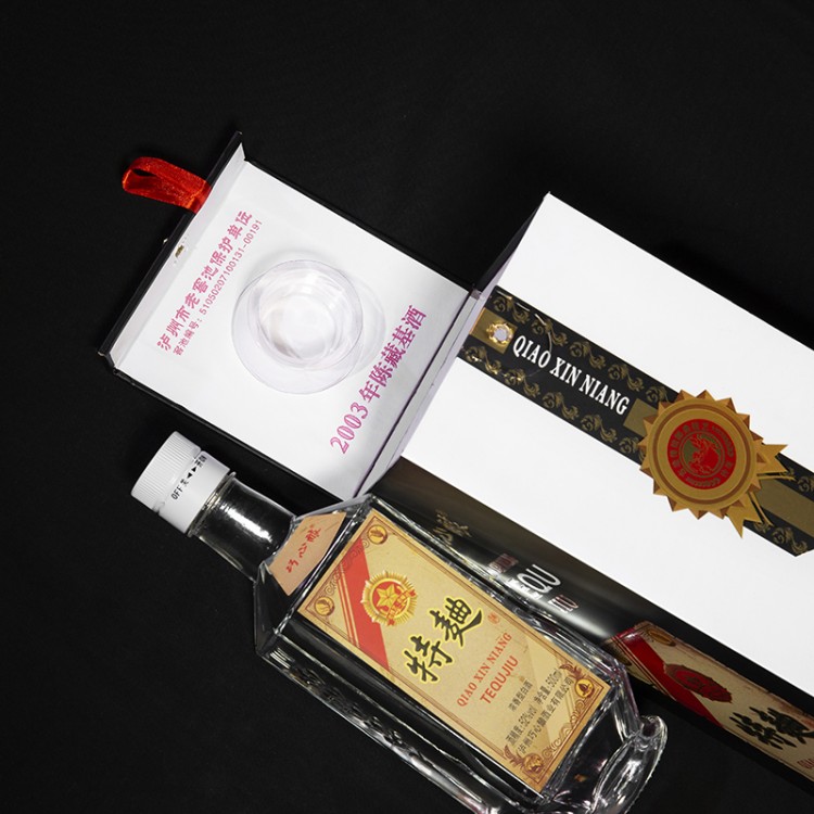 瀘州巧心釀80版特曲酒 純糧釀造醬香型500ml為人民服務(wù)酒 支持定制 詳細(xì)信息 咨詢優(yōu)惠,手機(jī)18602805195,微信同號,搜索添加即可!酒體選用傳統(tǒng)工藝釀制、固態(tài)發(fā)酵90天、五種糧食混合釀制的純糧食酒為基本酒體;酒色晶瑩剔透,酒花細(xì)密!口感方面,入口柔和、不辣口,吞咽時非常柔順、不辣喉,一口酒下肚后酒香滿口竄,回味悠長,半斤白酒下肚后不上頭,第二天不頭疼,心里不難受!年份方面,目前有數(shù)千箱存貨是2015年裝瓶的白酒,裝瓶年份已經(jīng)有4個年頭,白酒是一年一變化,3年一質(zhì)變,此已裝瓶4年的白酒更是別有風(fēng)味!并且本產(chǎn)品酒體是以2003年的陳藏私酒為基酒的,所以其口感比普通裝瓶存放5年的白酒更上一層樓!
