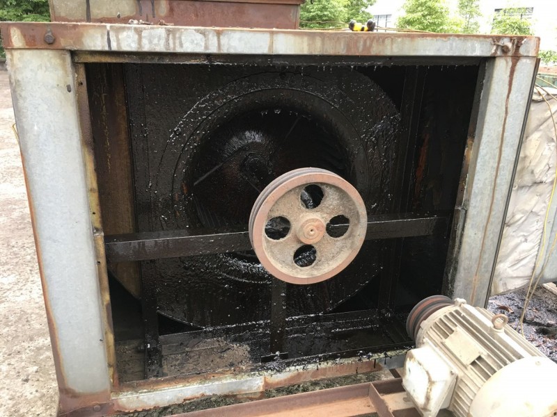 此方法容易操作、難度小、工作量小、費(fèi)用低的煙道清洗方式,對(duì)于油污較少,清洗周期短的煙道采用此法清理,先將管道內(nèi)噴灑清洗劑,使油污軟化,再用30米長的電動(dòng)軟軸刷將油污刷洗干凈。此法使用于30公分見方的豎煙道,無法進(jìn)入且不便拆卸的隱蔽的小煙道。這種不易清洗而且容易積油要縮短清洗周期。