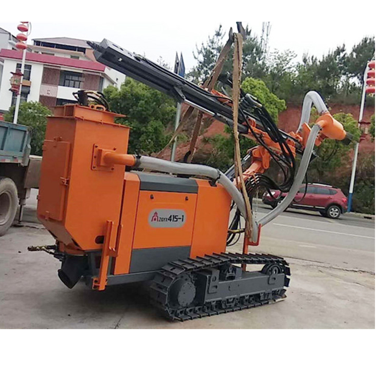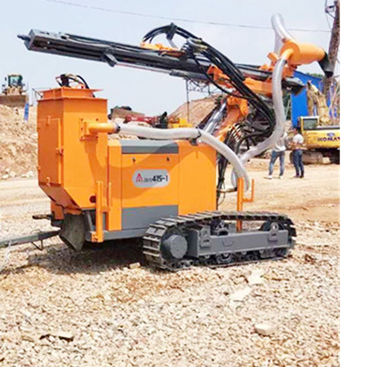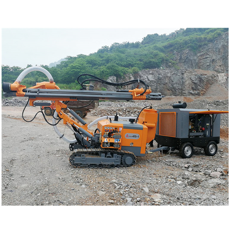 ZGYX-416/416-1分體式露天潛孔鉆機 詳細信息 該機型配置雙馬達回轉(zhuǎn)頭及回轉(zhuǎn)轉(zhuǎn)速可調(diào)多路閥,回轉(zhuǎn)扭矩可達1950N.m,滿足了φ76鉆桿、130孔徑的需求。回轉(zhuǎn)速度高可達150轉(zhuǎn),滿足了部分客戶對軟巖層高速鉆孔的需求。同時416系列機型標配工程履帶、柱塞馬達,使得爬坡能力更強,質(zhì)量更加穩(wěn)定可靠,該機型為同類機型中配置高的產(chǎn)品。