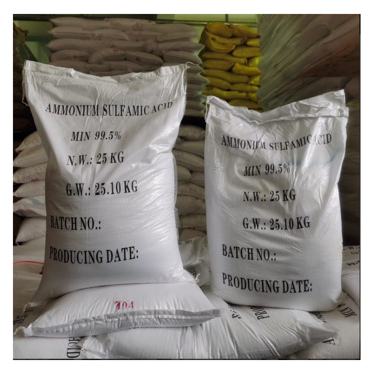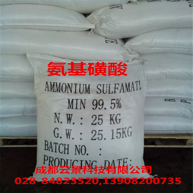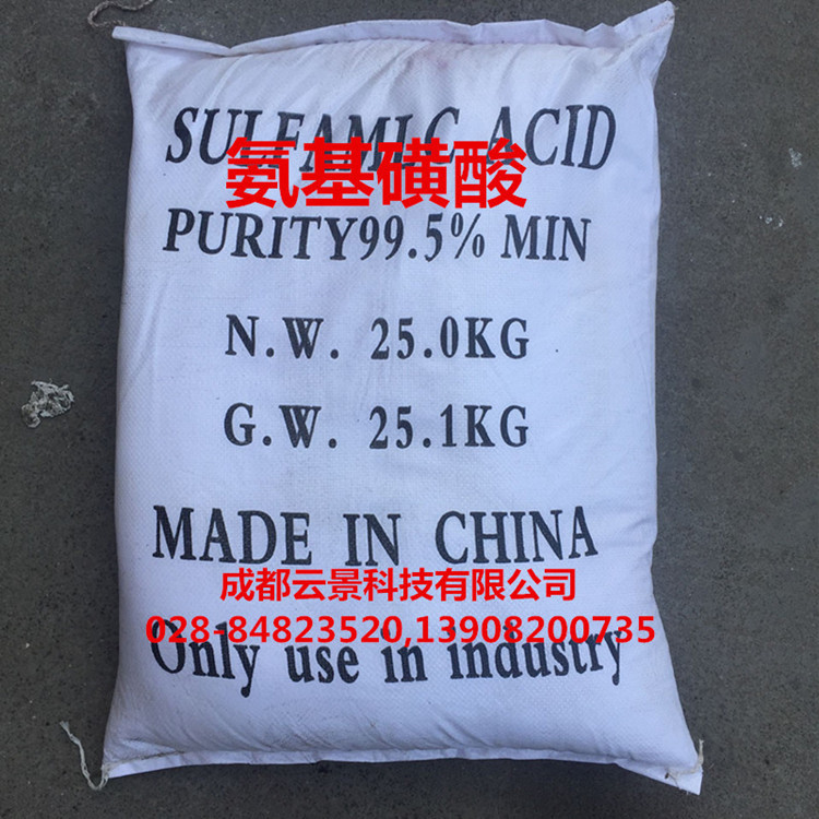 氨基磺酸,是一種硫酸的羥基被氨基取代而形成的無(wú)機(jī)固體酸,化學(xué)式為NH2SO3H,分子量為97.09,一般為白色、無(wú)臭的斜方形片狀晶體,相對(duì)密度2.126,熔點(diǎn)205℃,溶于水、 液氨,在常溫下,只要保持干燥不與水接觸,固體的氨基磺酸不吸濕,比較穩(wěn)定。 氨基磺酸的水溶液具有與鹽酸、硫酸等同等的強(qiáng)酸性,故別名又叫固體硫酸,它具有不揮發(fā)、無(wú)臭味和對(duì)人體毒性小的特點(diǎn)。 粉塵或溶液對(duì)眼及皮膚有刺激性,能造成灼傷,容許濃度10 mg/m 3。氨基磺酸可用于合成除草劑、防火劑、甜味劑、防腐劑、金屬清洗劑等,是一種常見(jiàn)的化工原料。