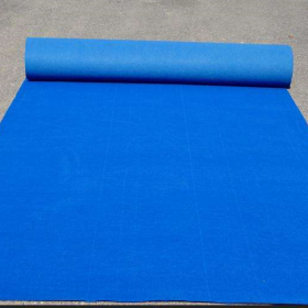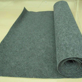 展覽地毯是短纖維經過不同的設備和工藝鋪排成網狀,在經過針刺等工藝讓不同的纖維相互交織在一起,相互纏結固著使織物規(guī)格化,讓織物柔軟、豐滿、厚實、硬挺,以達到不同的厚度滿足使用要求。針刺成型的坯布再經過背面上膠,烘干定型,切邊,成卷包裝。