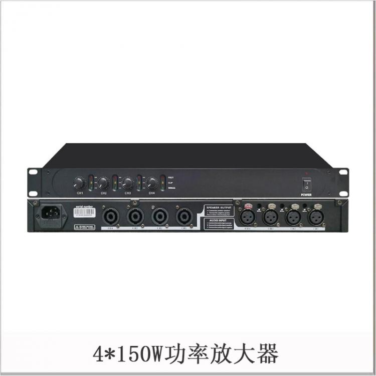 專業(yè)立體聲功放:8Ω額定功率(4*150W);頻率響應(yīng):20Hz-20KHz±0.5db ;諧波失真 < 0.08%;阻尼系數(shù): >450 ;電壓增益:34db ;信噪比:≥105DB ;聲道分離度≥65DB,電力消耗:500W;外型尺寸:483×430×44MM;毛重:5.2KG。