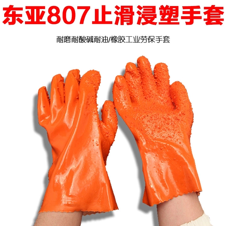 成都東亞807止滑耐油酸堿防滑加厚耐磨安全手套工業(yè)漁業(yè)勞保浸塑手套