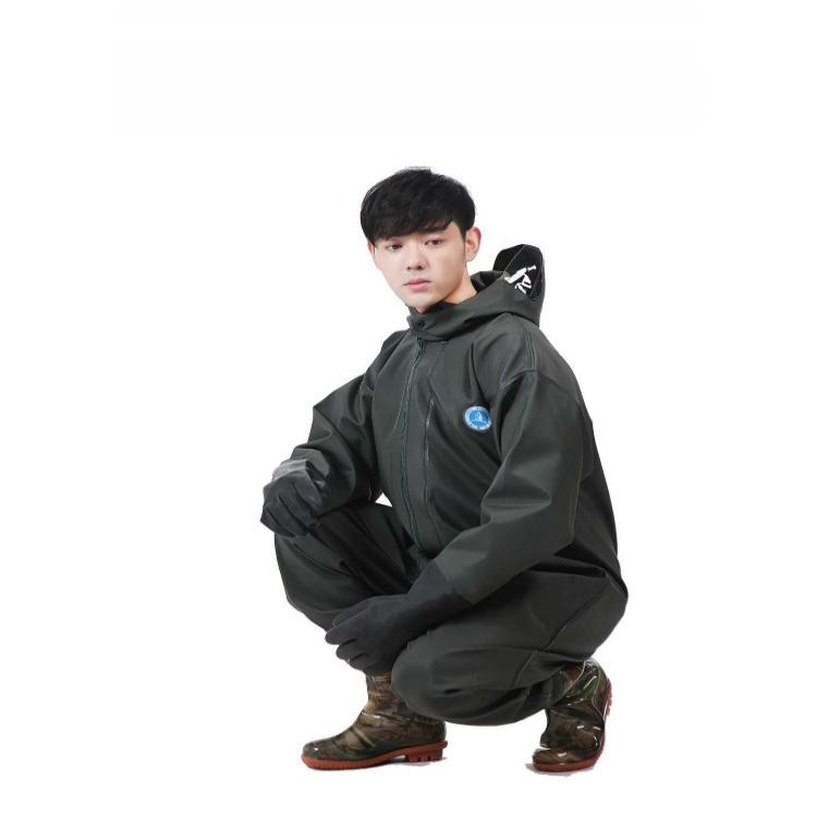 成都加厚全身下水褲牛筋底捕魚連體褲防水釣魚褲雨靴防水服涉水褲下田