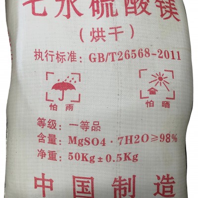 品名:七水硫酸鎂 分子式:MgSO4 CAS.:7487-88-9 產(chǎn)地:四川 含量:98% 外觀:白色鹽巴晶體狀 包裝:聚丙烯編織袋, 50kg/袋 用途:用于肥料,飼料,石油,制革,造紙,醫(yī)藥,瓷器等領(lǐng)域。 聯(lián)系方式