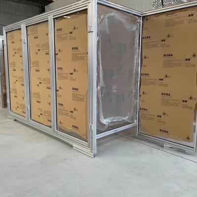 2、 組裝:該車間設備防護罩采用4040歐標鋁合金型材及有機玻璃板組裝而成,門框采用合頁的連接方式組裝方便,外觀美觀。
