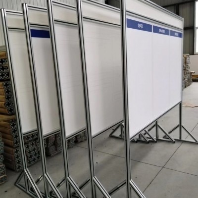 2、 產(chǎn)品特點:鋁型材宣傳欄由404鋁型材以及白板組裝而成,該宣傳欄下方也可以加腳輪可以移動。