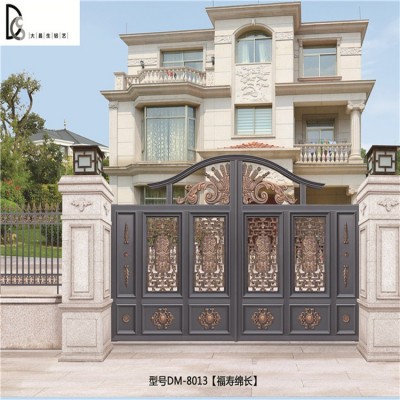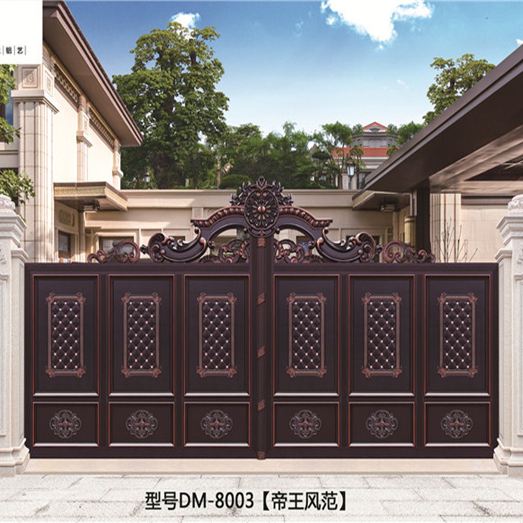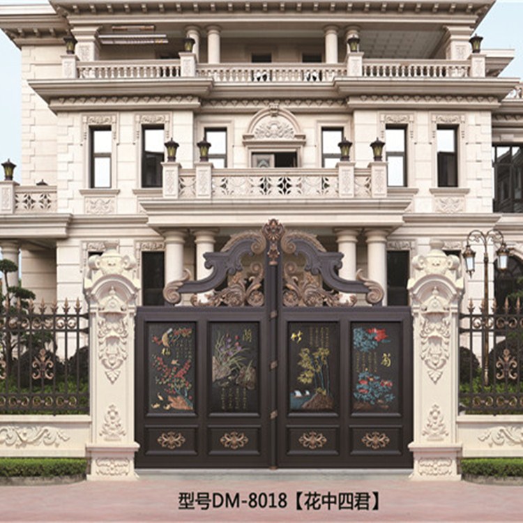 品名:別墅大門 型號(hào):DM-8025、DM-8023、DM-8028…… 優(yōu)勢:優(yōu)質(zhì)選材、精美做工、不褪色、精美鑄花 可定制:屏風(fēng)、隔斷、護(hù)欄、護(hù)窗、柵欄、陽光房、車棚、窗棚、鋁藝大門、庭院小門 是否跨境貨源:是 高度:定制(cm) 規(guī)格:多種