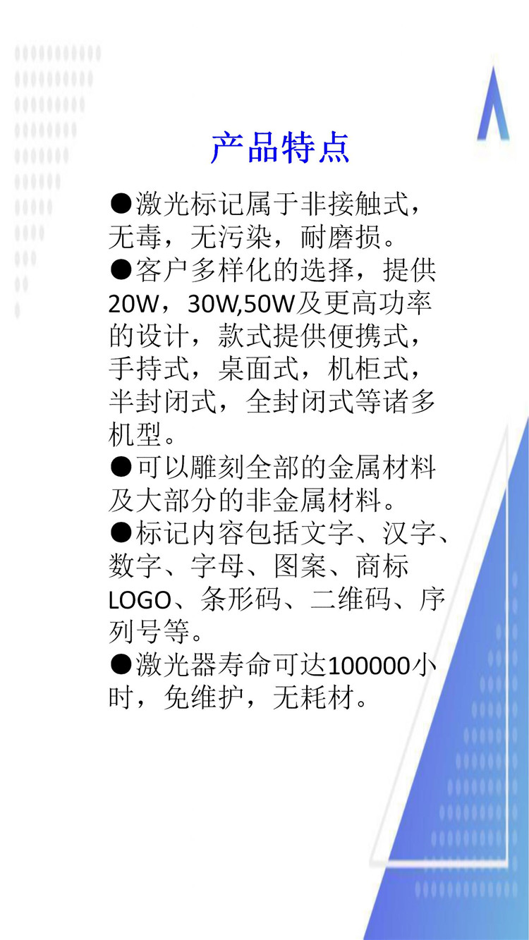 詳細信息 ![]() ![]() ![]() ![]() ![]() ![]() ![]() ![]() 成都飛龍達打標機專業(yè)生產(chǎn)制造激光打標機、氣動打標機、提供售后維修服務、屬于實力工廠,不管你是否在我公司購買的產(chǎn)品,我司均可提供售后維修服務*,四川內所有地區(qū)售后均可提供上門服務,激光設備,氣動設備有問題隨時可以和我們聯(lián)系,詳情來電18328625869徐經(jīng)理,028-87533230 13096383158 聯(lián)系方式