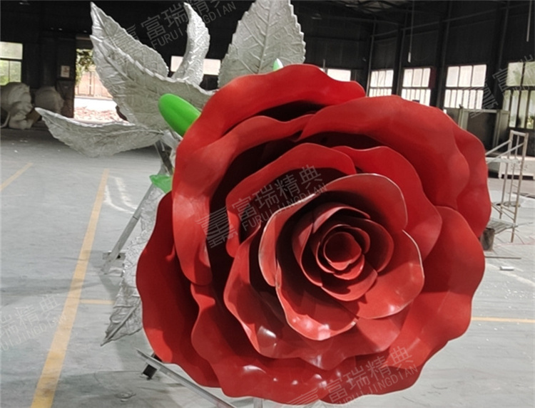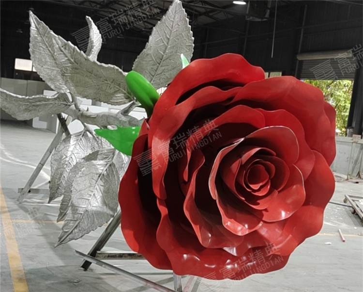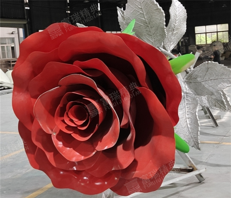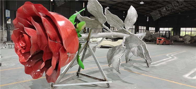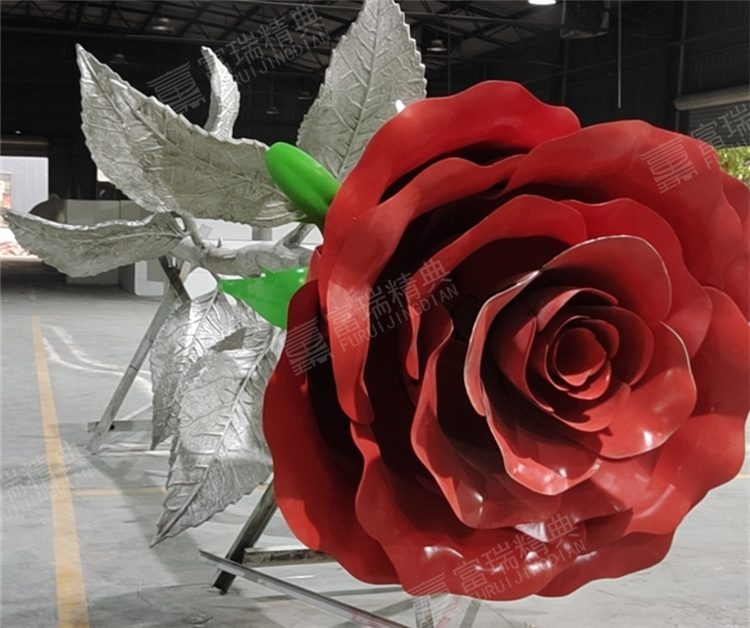 景觀雕塑不銹鋼玫瑰花雕塑金屬裝飾安裝一體