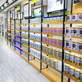 產(chǎn)品名稱:母嬰店貨架奶粉展示架子超市鋼木架 多功能嬰兒用品架 貨架廠家