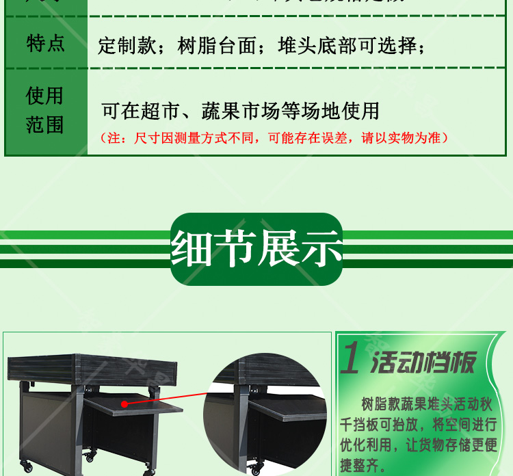 產(chǎn)品參數(shù) 產(chǎn)品名稱:樹脂圍邊蔬果堆頭定做超市貨架水果蔬菜堆頭貨架廠家
