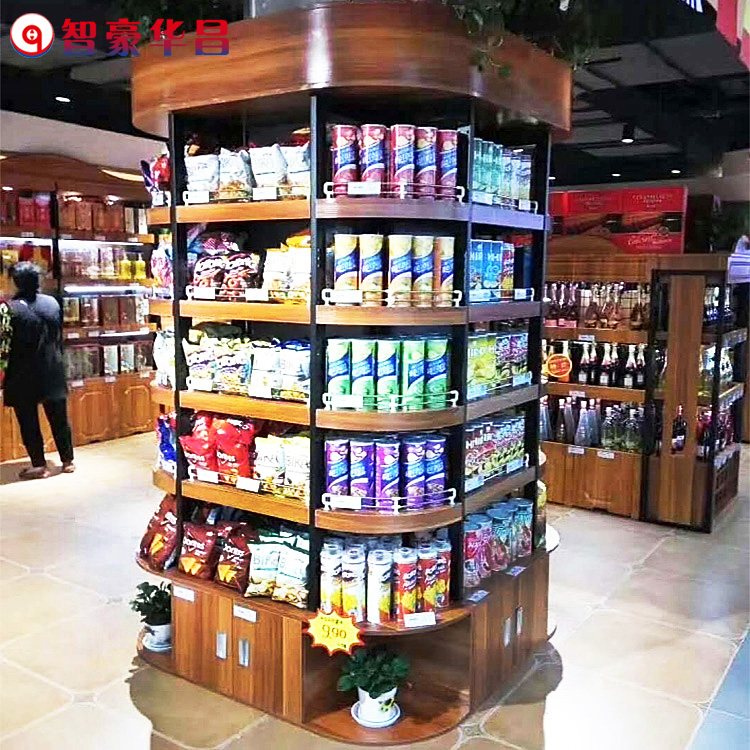 智豪華昌超市貨架便利店展示架子包立柱鋼木貨架定制廠家