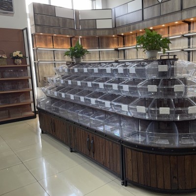 產(chǎn)品參數(shù) 產(chǎn)品名稱:超市中島散裝貨架干雜中島柜木制零食展示柜子 成都貨架定制廠家