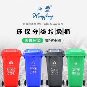 產(chǎn)品名稱:  恒豐牌塑料分類垃圾桶120L戶外大環(huán)衛(wèi)垃圾筒帶輪移動(dòng)市政垃圾箱