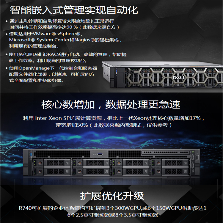 自動(dòng)化管理。再加上獨(dú)特的免代理管理功能,R740xd