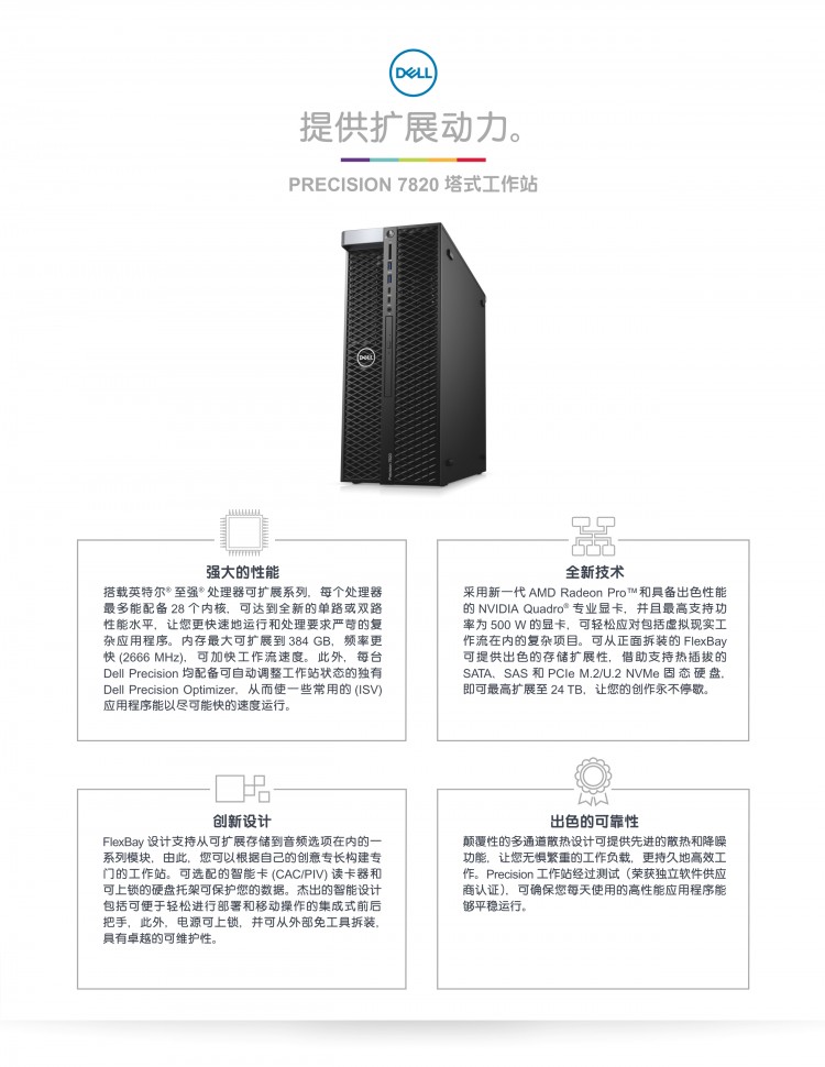 PowerEdge R740xd 可在存儲可擴展性和性能之間提供出色的平衡。2U 雙插槽平臺非常