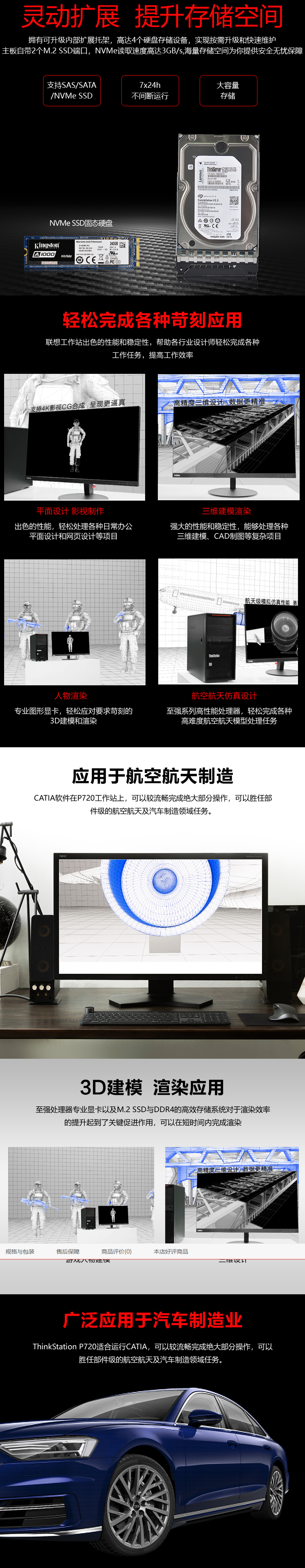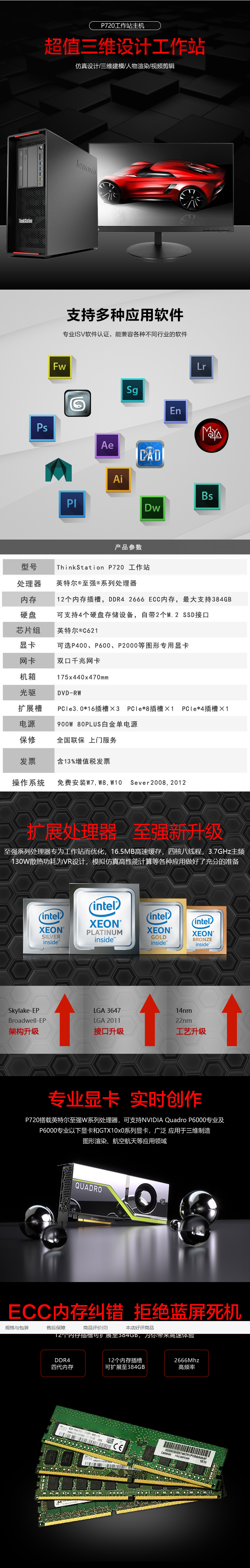 ThinkStation P720是款卓越的工作站,支持雙NVIDIA P6000或GP100專業(yè)顯卡,配置英特爾新的Xeon CPU和設(shè)計結(jié)構(gòu)。ThinkStation P720可選擇ecc內(nèi)存,配置高端靈動托架每個托架可以支撐兩個驅(qū)動器。本款新代工作站旨在滿足關(guān)鍵任務(wù)需求。對于建筑制造行業(yè)、影視娛樂、金融和醫(yī)藥等要求計算機(jī)高性能的行業(yè),它是理想之選。