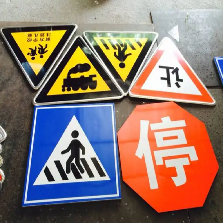 | 交通標牌標志的顏色、形狀的規(guī)定 (1)警告標志的顏色為黃底、黑邊、黑圖案,形狀為等邊三角形,頂角朝上。(2)禁令標志的顏色為白底、紅圈、紅杠、黑圖案,圖案壓杠。其中解除禁超車、解除限制速度標志為白底、黑圈、黑杠、黑圖案,圖案壓杠。形狀為圓形,讓路標志為頂角向下的等邊三角形。 (3)指示標志的顏色為藍底、白圖案。形狀為圓形、長方形和正方形。 (4)指路標志的顏色除里程碑、百米樁、公路界牌外,一般道路為藍底、白圖案。形狀除地點識別標志外,均為長方形和正方形。里程碑、百米樁和公路界碑均屬指路標志。里程碑設在國道上時顏色為白底、紅字;設在省道上時顏色為白底、藍字;設在縣、鄉(xiāng)道上時顏色一律為白底、黑字。公路界碑的顏色不分道路性質,一律為白底、黑字。 |