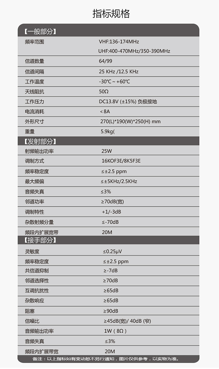 信道間隔: 25KHZ(寬帶) 20KHZ(中帶) 12.5KHZ(窄帶)