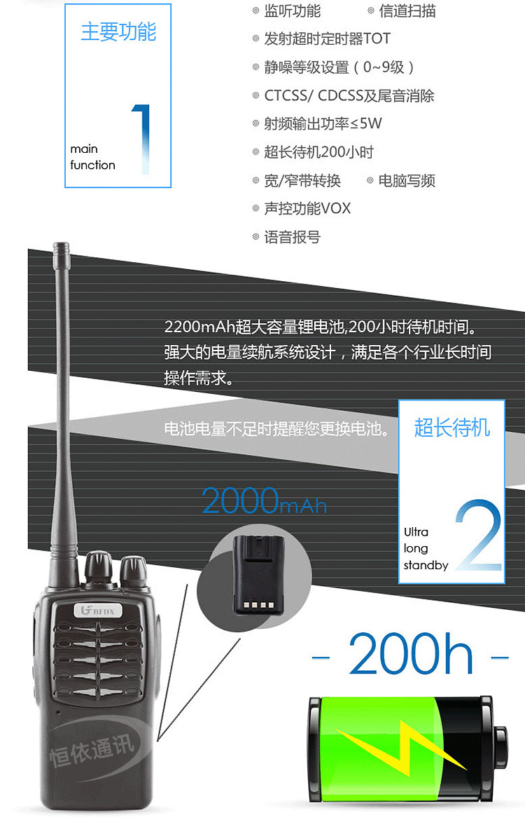 信道間隔: 25KHZ(寬帶) 20KHZ(中帶) 12.5KHZ(窄帶)