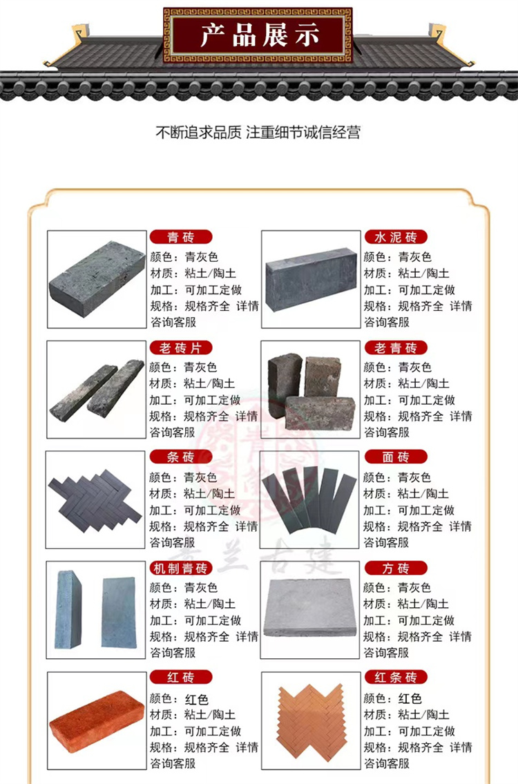 青磚老磚切片人行道庭院鋪地磚人字磚古建粘土小條磚