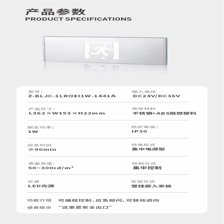 產(chǎn)品參數(shù) 產(chǎn)品名稱:智能標(biāo)志燈 語音提示集中電源集中控制消防應(yīng)急疏散指示安全出口