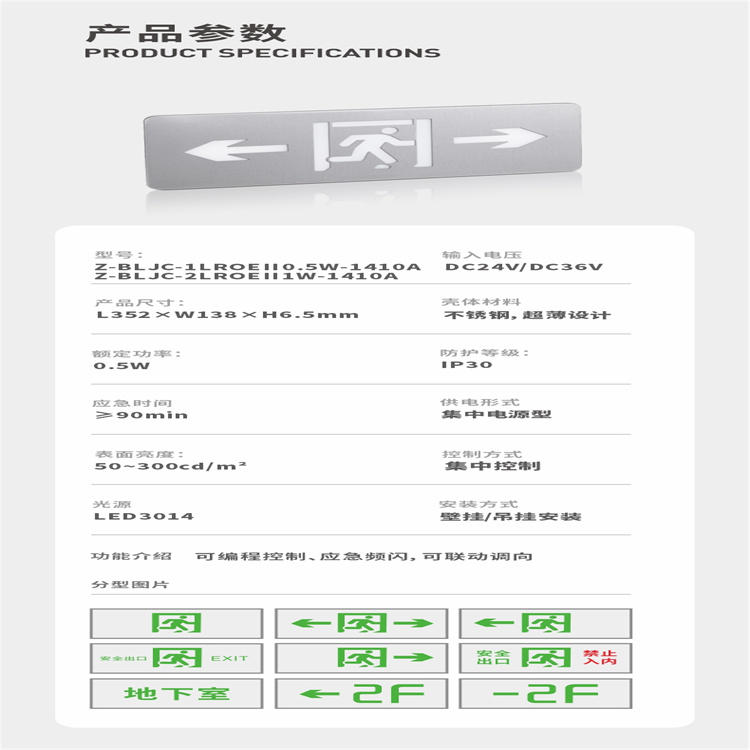 產(chǎn)品參數(shù) 產(chǎn)品名稱:智能標(biāo)志燈 不銹鋼 安全出口集中電源集中控制消防應(yīng)急疏散指示燈