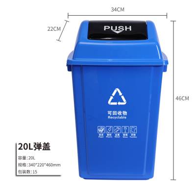 四川環(huán)衛(wèi)垃圾桶批發(fā)廠家 彈蓋垃圾桶廠家 彈蓋20L 可定制logo 詳細信息 新國家分類垃圾桶   堅固耐用  色彩鮮艷   現(xiàn)貨供應(yīng)  送貨上門  免費開票